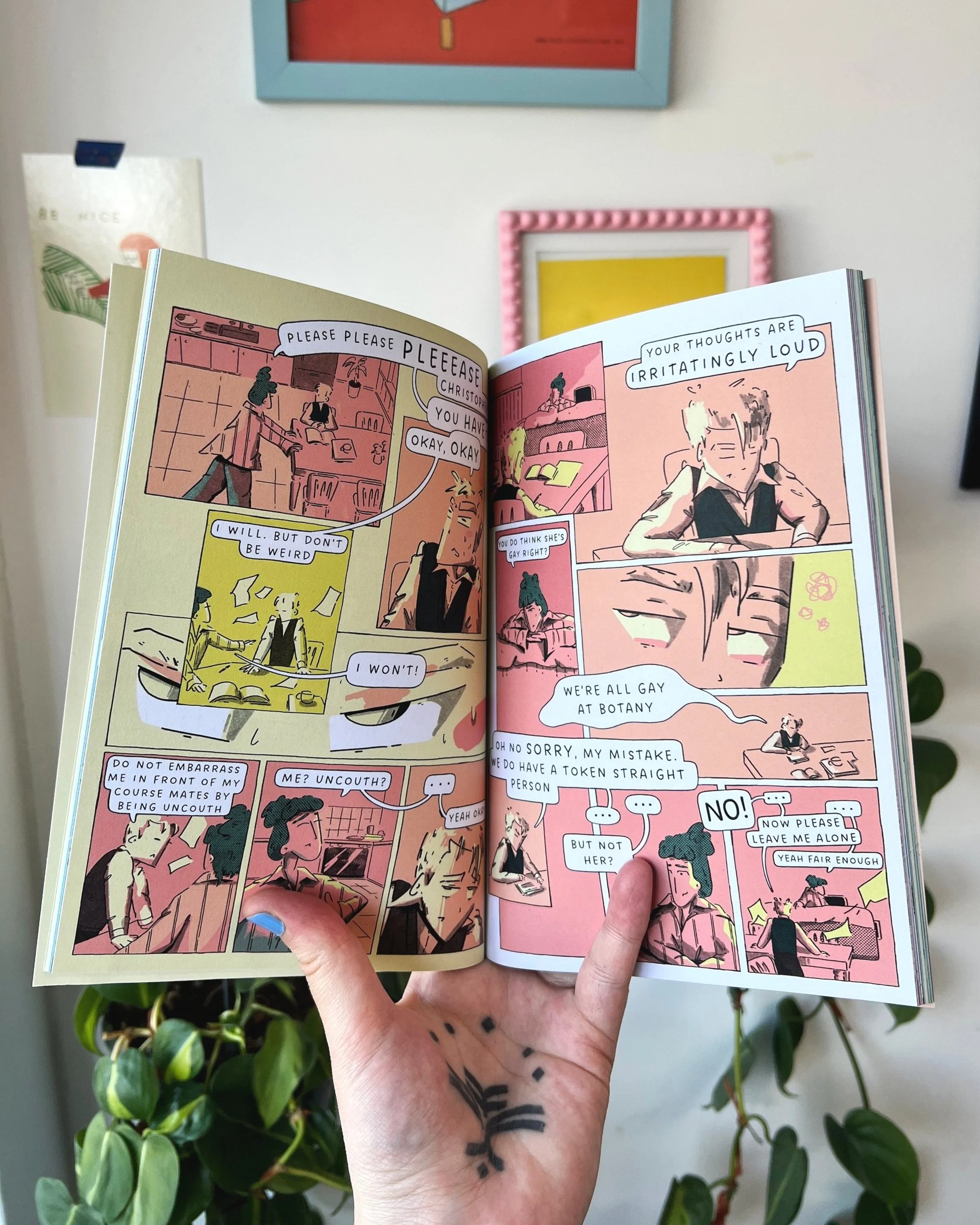 The Players, The Fool and a few fish is a romantic comedy set in 2002 as some new students attend university. Love, loss and desire are the main themes. There's unrequited love and some sadness but also lots of silliness. To find out more about the artist : https://www.instagram.com/madzillus/